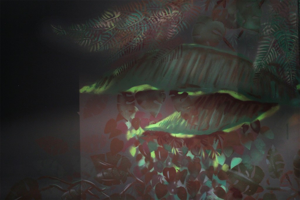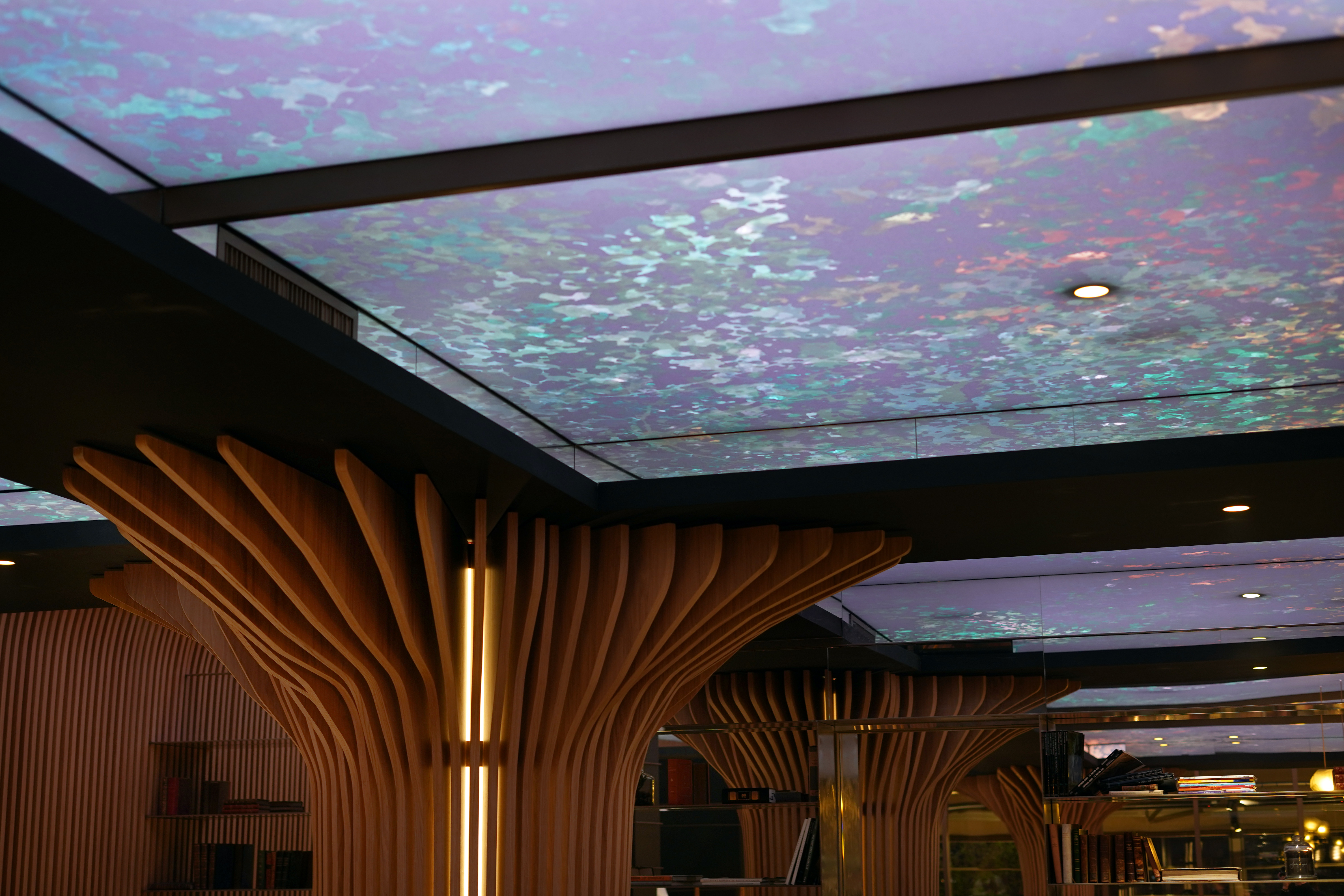 Fresque digitale , imprimée sur plafond tendu rétroéclairé.